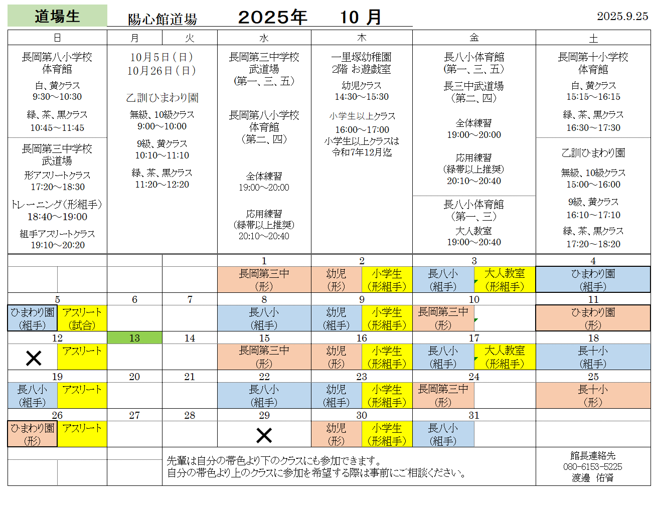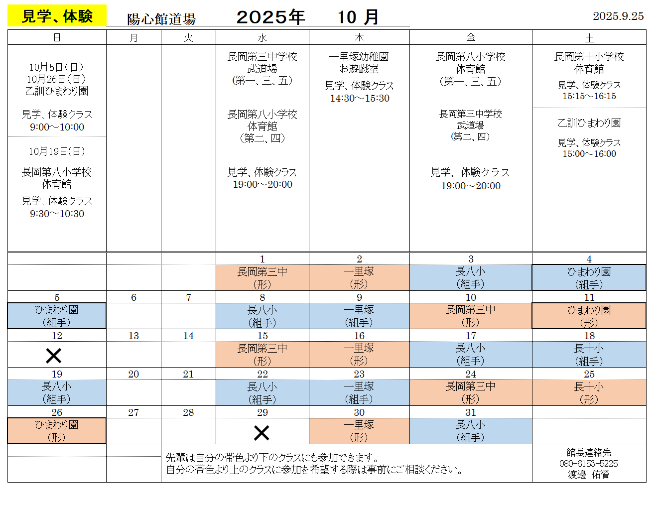 今月より、水曜日・金曜日の練習時間が変更となっております。
