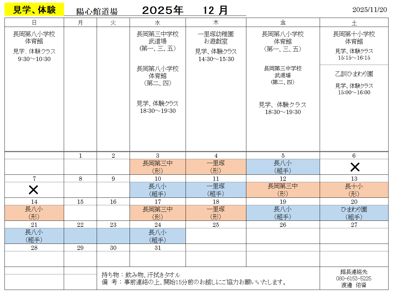 陽心館への入会・相談、稽古の見学・体験のお申し込みはお電話・メールで受付しております。