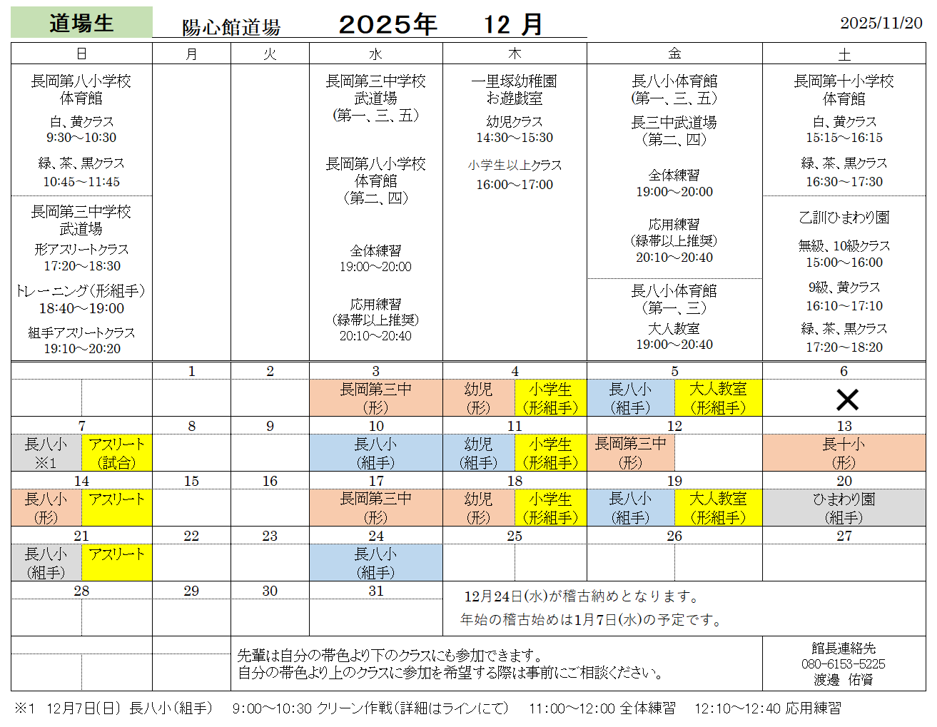 2025年の稽古納めは12月24日(水)です。
